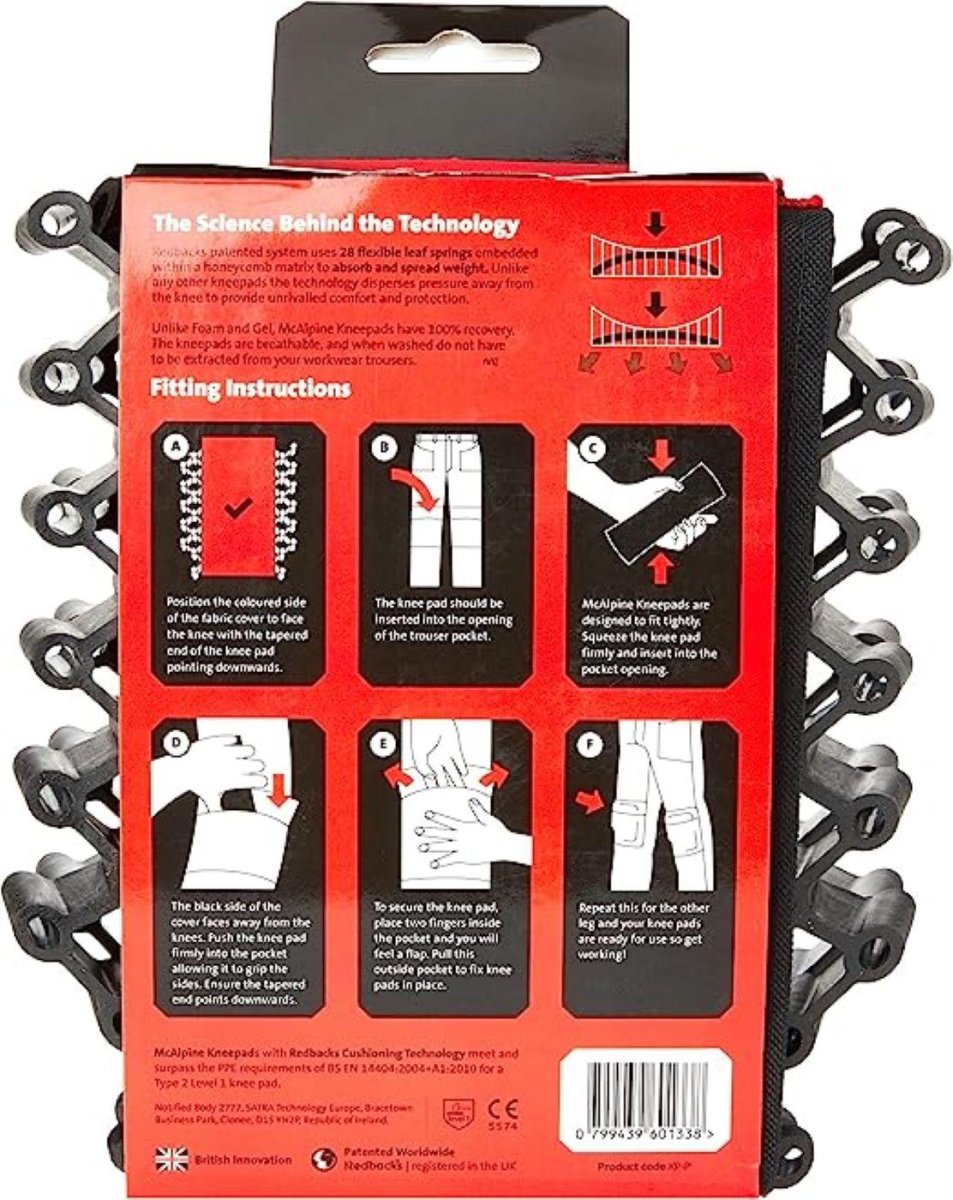 Redbacks® prisbelönta knäskydd har vetenskapligt bevisats överträffa knäskydd av skum av professorer vid Staffordshire University. passar arbetsbyxor med fickor, 100 % återvinningsbar. Patenterad Leafspring-teknik. Böjd för att passa runt knä, vattentät och maskintvättbar.