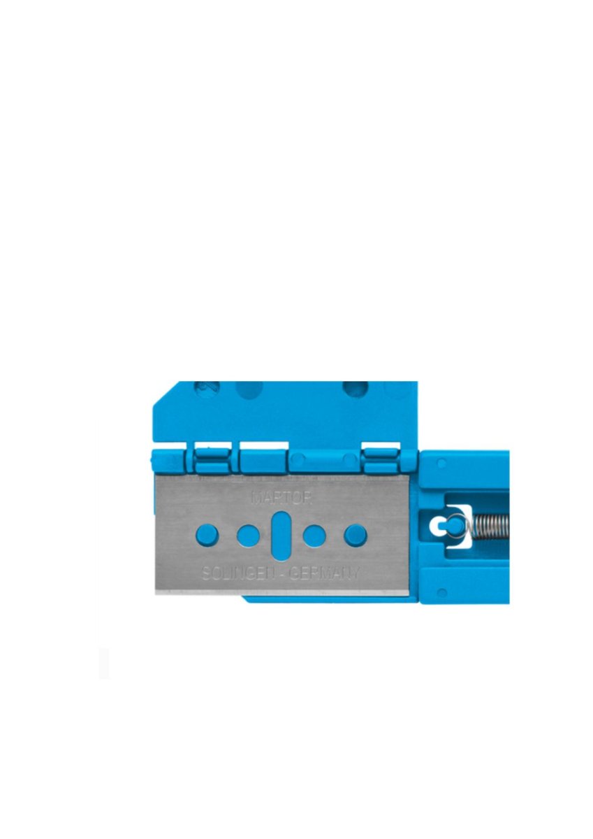 Ett kraftpaket, med rätta. Eftersom plastinlägget med bladet sitter i ett handtag av lackerad metall. Ditt skärverktyg följer gärna med dig längre "i tjockt och tunt". SECUNORM HANDY passar i varje ficka. När det inte behövs. När du skär kommer du att njuta av dess lätthet och smidighet. Och ett säkert grepp om det räfflade reglaget. Att byta bladet är så enkelt att du inte behöver några verktyg eller instruktioner. För säkerhets skull: dra ut plastinsatsen från baksidan av handtaget, vrid eller byt bladet, allt tillbaka och det är allt!